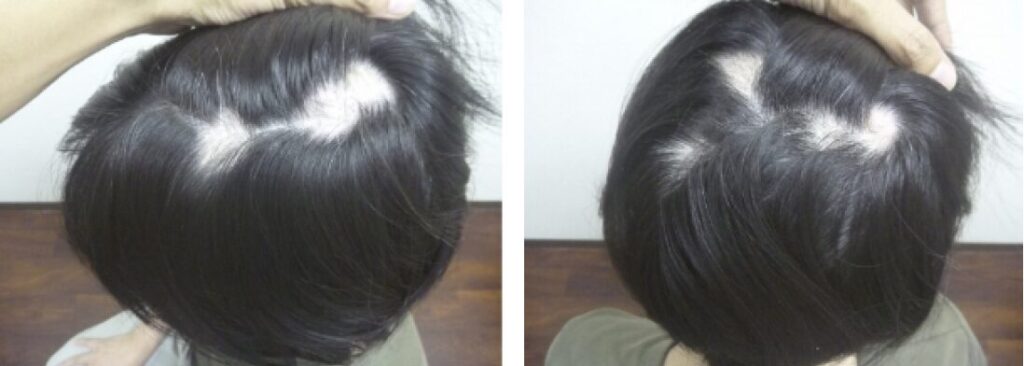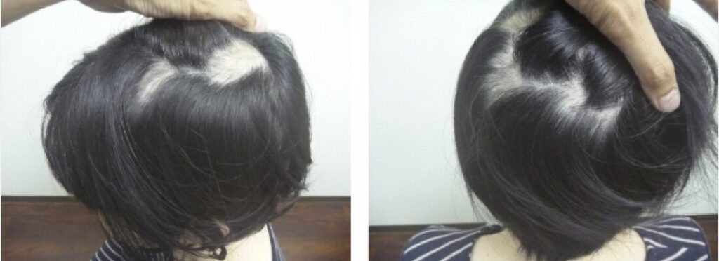 円形脱毛症が最初に1つ見つかり、その後、7、8ヶ所に増えて悩んでいました。