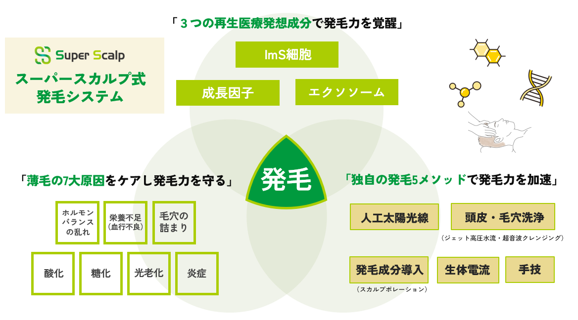 ここからは、なぜスーパースカルプ発毛センターで髪が生えるのか、3つのアプローチについて解説していきます。