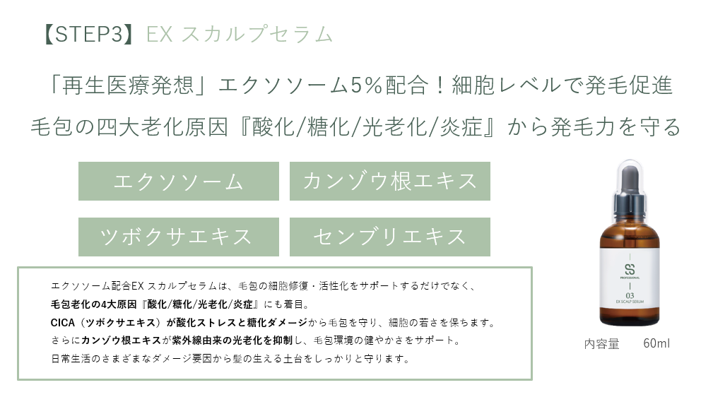 3つ目の成分が、エクソソームを配合したEXスカルプセラムです。